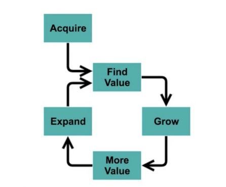 It has to be a combination of getting that initial usage and then building the flywheel. This graphic really captures that initial acquisition, quickly finding value, and then finding paths to growth that deliver yet more value, leading to expansion, and so on in this virtuous cycle.