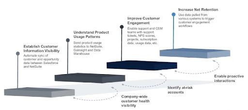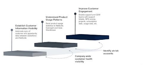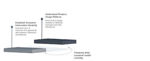 The first was setting a foundation of basic customer information visibility. In our case, we use Salesforce as our CRM and NetSuite as our ERP, this is where all the financial data is going to be captured.
