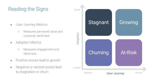 From this grid point of view, you can imagine the worst-case scenario is being in the bottom left - very negative sentiment from a user journey point of view, and very limited adoption. Again, the next time that subscription comes up for renewal, you're going to be probably in a bit of trouble.