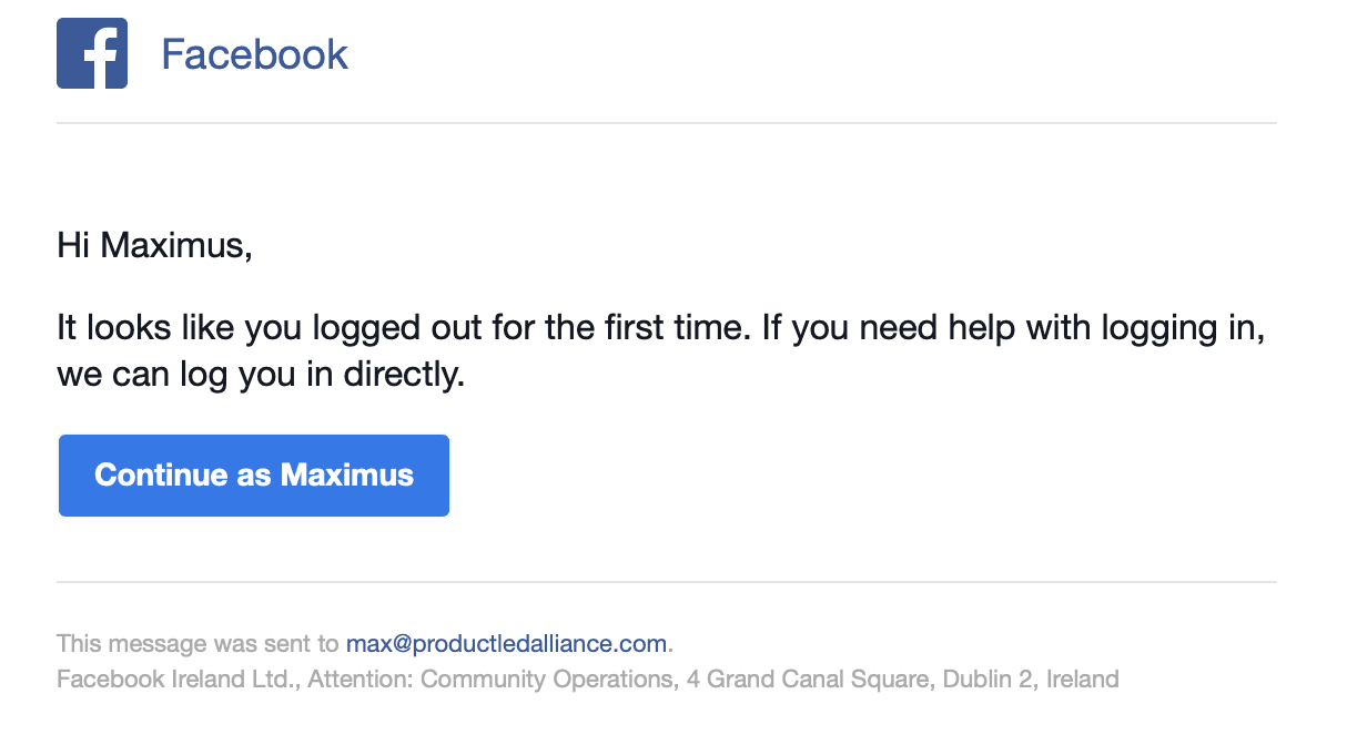 Facebook also email you as part of the onboarding sequence, giving you another avenue to get those first few steps completed.
