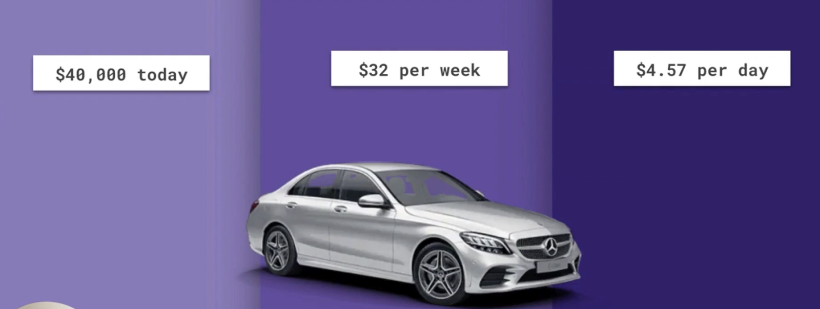 Let's pretend you're selling a high-value Mercedes Benz, you could show the full cost for $40,000 today, or you could show the cost broken down perhaps by using a bit of this hyperbolic discounting insight.