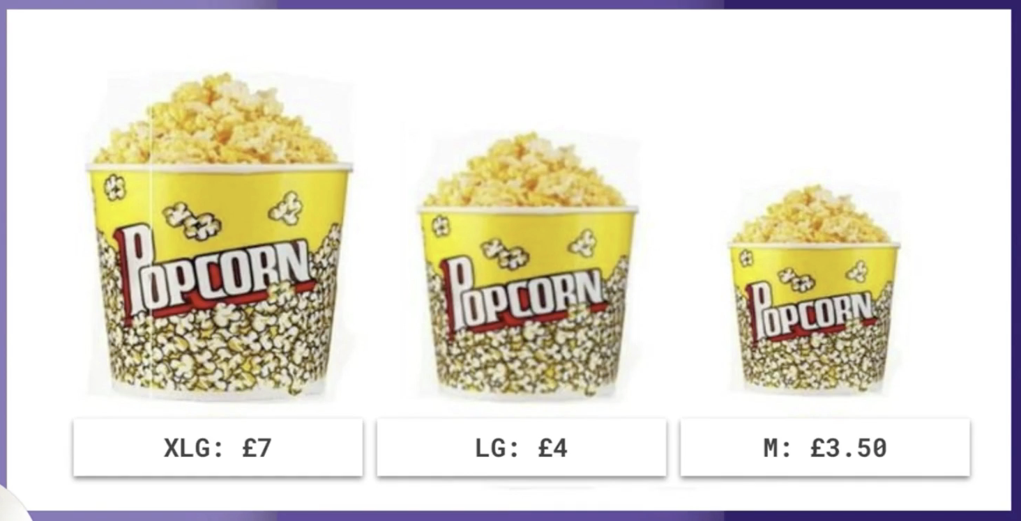 To explain the decoy effect, I'll give a bit of a story about myself and I'm weirdly habitual when I go and watch movies at the cinema.