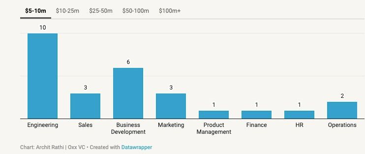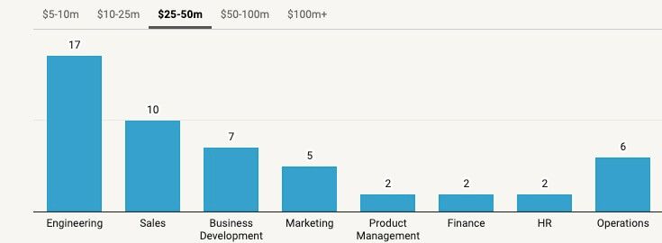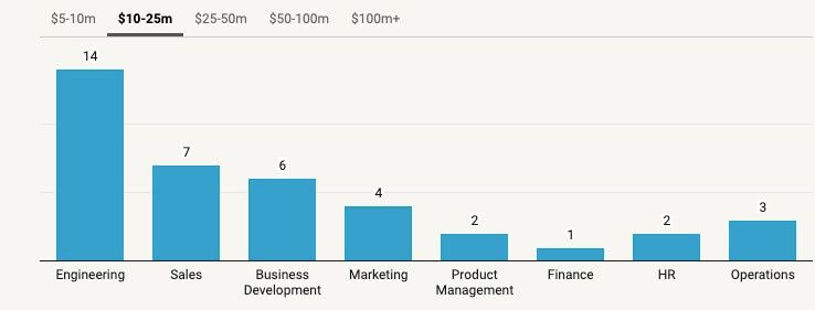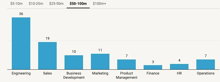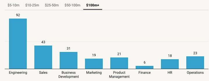 Data shows that you would likely only have a handful of people in these functions up until your $100m fundraise, so being absolutely sure that both of you are a mutual fit is key!