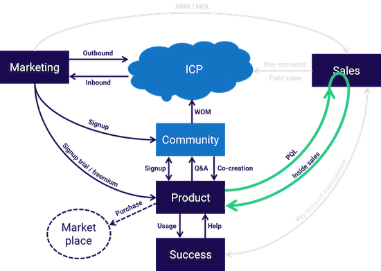 PLS is based on strong user self-qualifications with clear behavioral indicators that a group of users inside an account are ready to purchase. If a test user (or team) is actively engaged with the freemium or trial version, and they are an ICP, they are qualified and can be approached by an inside sales rep to guide them through the buying process.