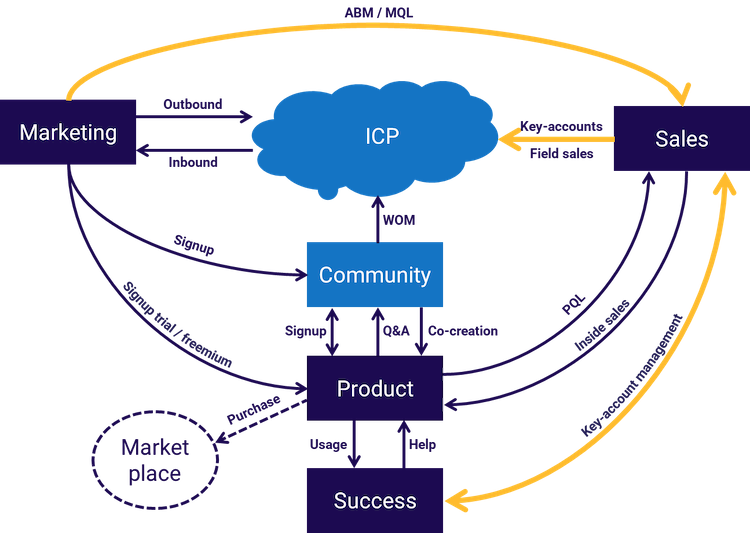 The phenomenal success of hyper-growth companies like Slack, Dropbox, Atlassian, Datadog, and Snowflake has triggered many discussions about modern go-to-market (GTM) methods for B2B SaaS, including PLG, PLS, community-led, ABM, marketplace, and others.